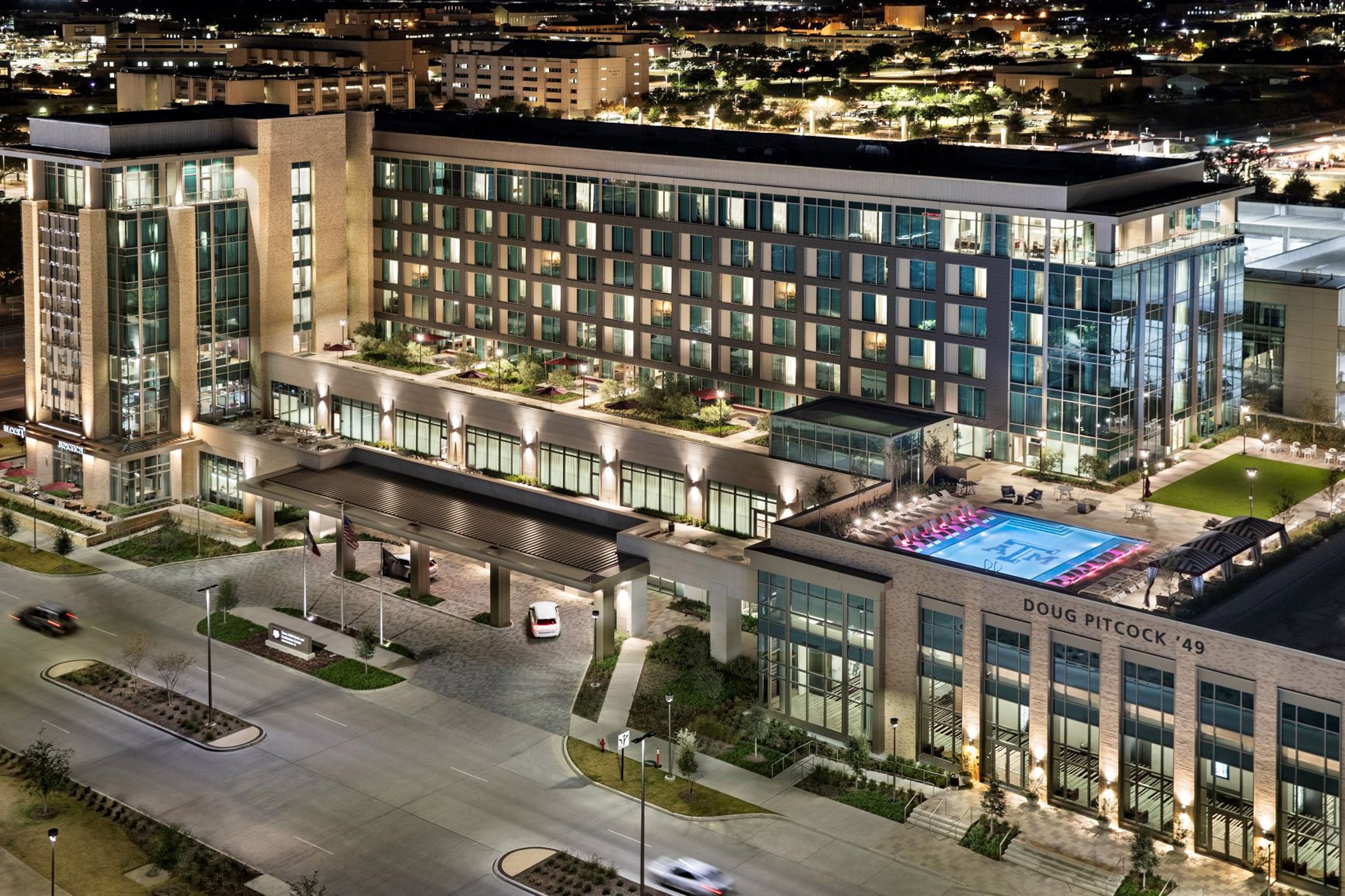 As the newest hotel in College Station, Texas A&M Hotel and Conference Center provides guests with a true southern hospitality experience. Our facilities include multiple dining outlets and bars, a fully-equipped fitness center and rooftop pool with private cabanas all conveniently located in the heart of the Texas A&M campus.